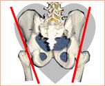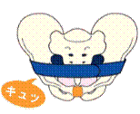 また、出産直後から、正しいケアをしないと、ゆるんだ骨盤が元に戻る際に歪んでしまいます。特に、出産直後きついリフォーム・ガードルや産褥ニッパーをつけることにより上記の写真のように骨盤の底が開いてしまい尿漏れ、大きなヒップの原因にもなります。反対に既に骨盤の歪みによる腰痛のある方には、妊娠中~産後1~2ヶ月は歪みを矯正する絶好のチャンスということになります。
