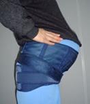 image038 10. (背面) 妊婦帯を後ろでクロスさせます。クロスさせる位置は痛む部位を押さえようにクロスさせると、痛みが和らぎます